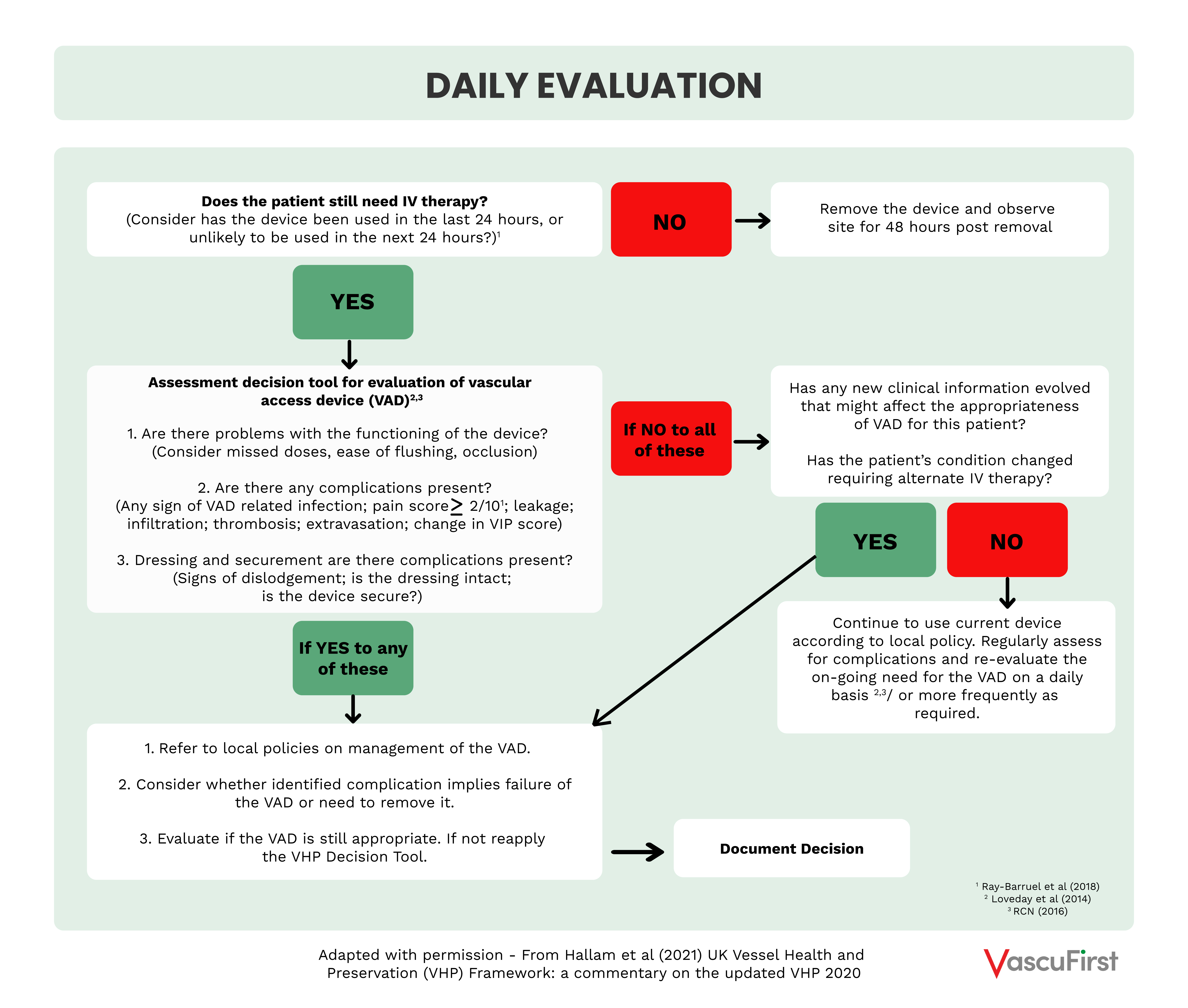 The VHP 4 quadrants of care provides a model to prevent complications from vascular access with the potential to improve healthcare and economic risks, improve patient experience and preserve veins for future use. The UK VHP Framework was developed using the VHP concept to assist with vascular access device selection and daily evaluation.