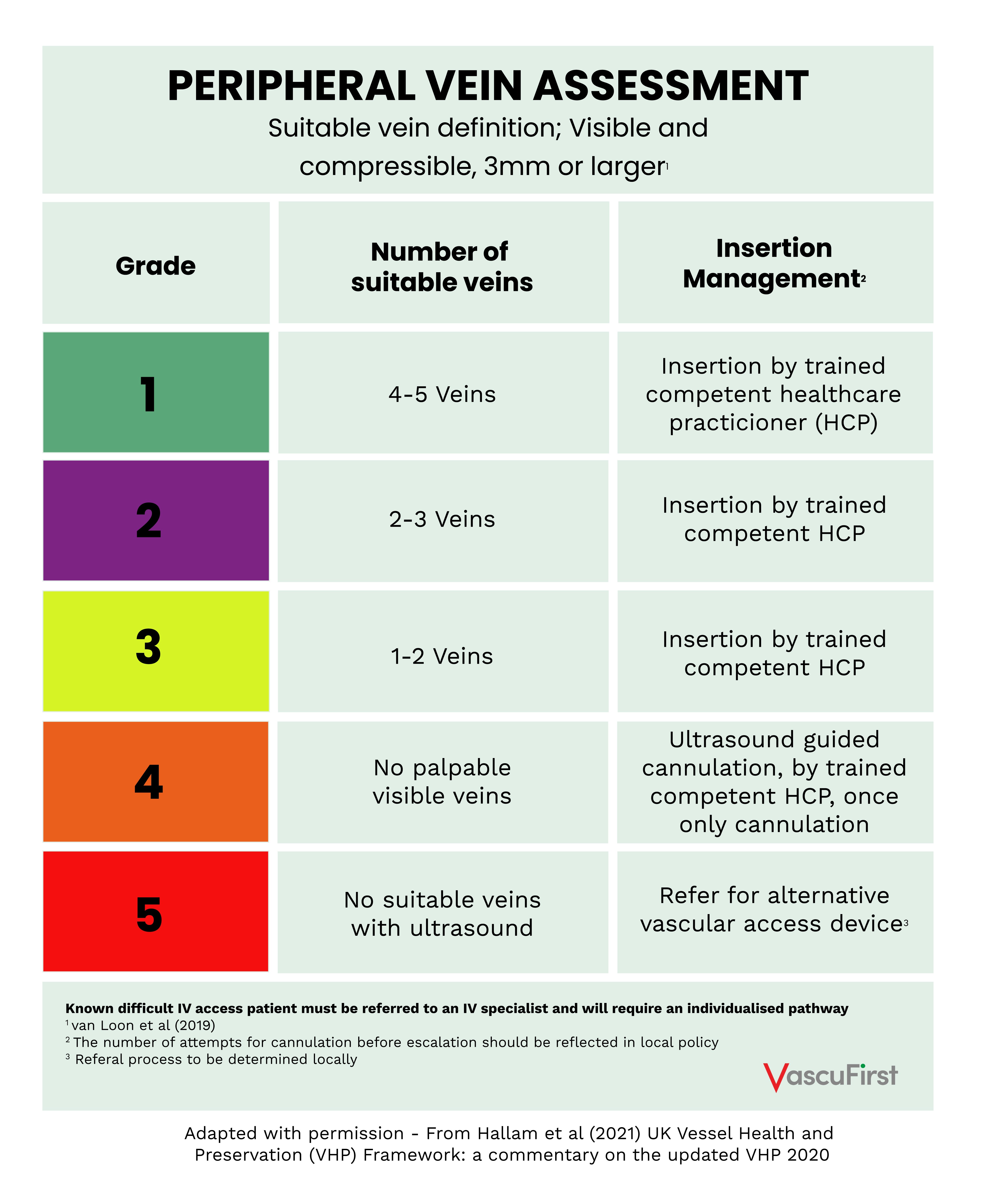- A vein assessment tool providing a scale of 1 – 5 on the quality of peripheral veins.